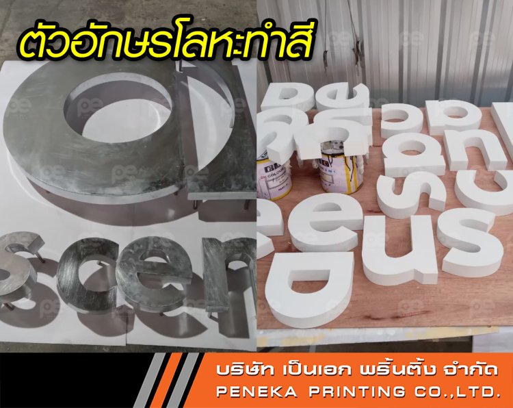 เป็นงานดัดยกความหนาขอบตามรูปแบบตัวอักษรหรือสัญลักษณ์ โดยมักใช้โลหะประเภทซิงค์ สังกะสี สแตนเลส หรืออลูมิเนียมในการผลิต แล้วจึงนำมาพ่นสีตามที่คุณลูกค้าต้องการค่ะ โดยเฉดสีที่เราใช้จะอ้างอิงจาก Fandex ของ TOA ซึ่งมีให้เลือกมากกว่า 10,000 สี คุณลูกค้าจึงมั่นใจได้ว่า จะได้สีของเนื้องานใกล้เคียงกับความต้องการมากที่สุดแน่นอนค่ะ