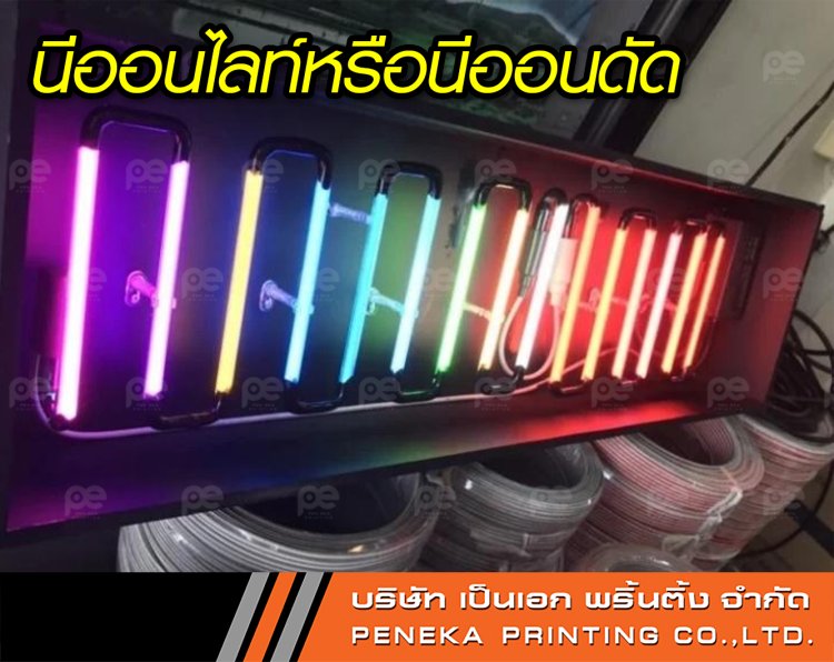 นีออนดัด หรือหลอดเรืองแสง เป็นหลอดไฟที่สามารถดัดให้เป็นรูปร่างต่างๆ ได้ตามความต้องการ นิยมใช้ตกแต่งร้านอาหาร ผับ บาร์ ให้มีสีสัน และรูปร่างหลากหลาย เป็นป้ายที่มีความโดดเด่น น่าสนใจอีกแบบนึงเลยค่ะ