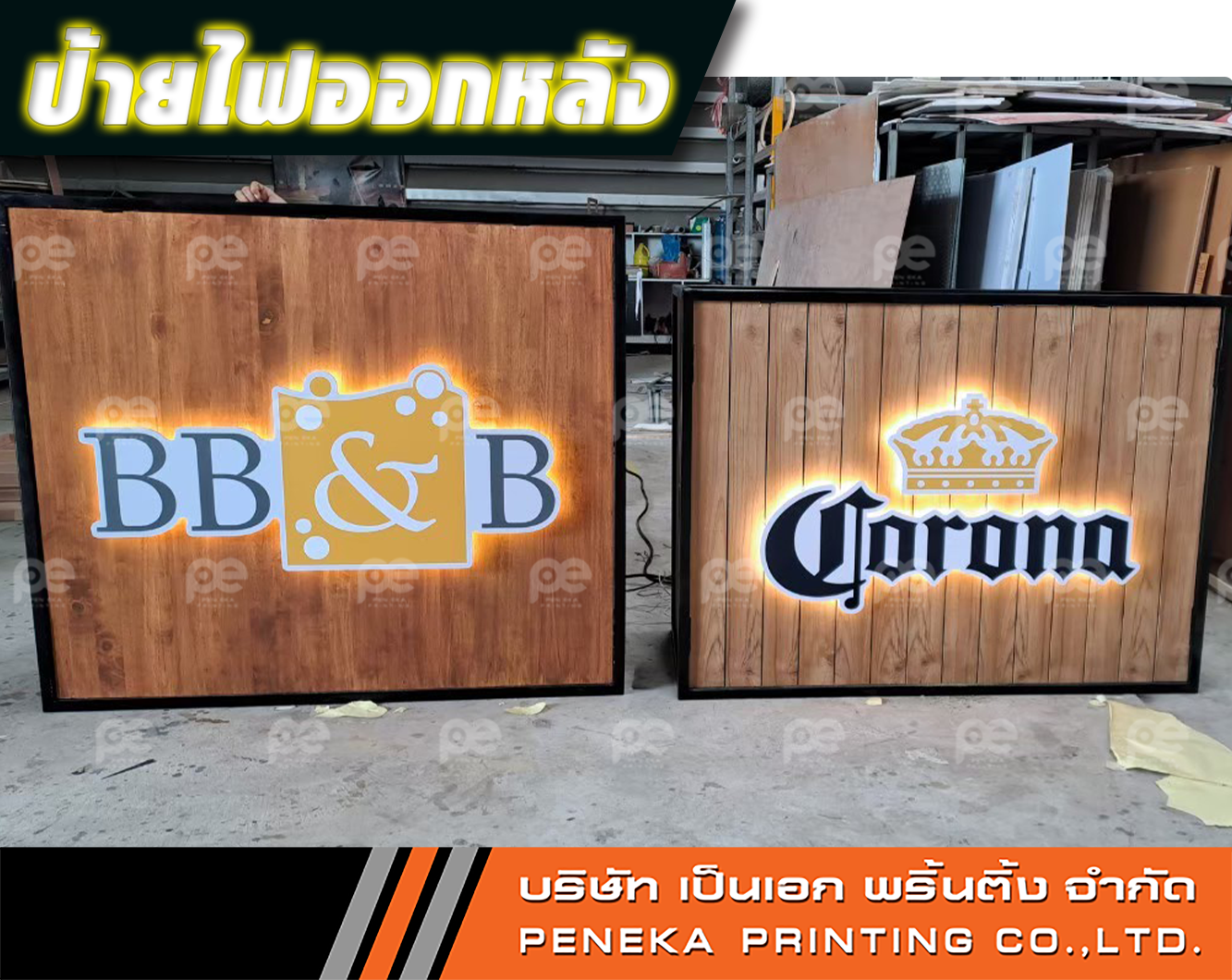 คือป้ายที่แสงสว่างส่องออกด้านหลัง ทำหน้าที่เป็นเงา เพื่อทำให้ป้ายตัวอักษร หรือรูปต่างๆ มีความโดดเด่น และสวยงาม เหมาะสำหรับป้ายร้านค้า ร้านอาหาร ฯลฯ